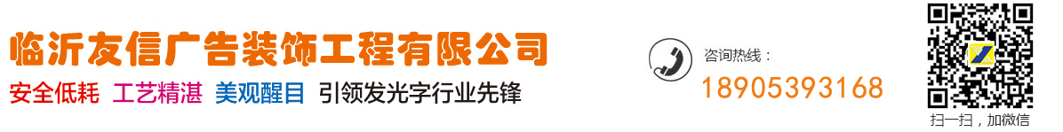 臨沂市友信廣告裝飾工程有限公司是一家從事LED外露發(fā)光字制作、外漏LED銃孔發(fā)光字、臨沂亞克力發(fā)光字、不銹鋼發(fā)光字、霓虹燈、銅字標(biāo)牌、樹脂字、樹脂發(fā)光字、環(huán)氧樹脂發(fā)光字等發(fā)光字,所以說臨沂發(fā)光字行業(yè)比較有優(yōu)勢,是不銹鋼字牌、鈦金字牌、金箔字、貼金字、水晶字、不銹鋼燈箱字、LED燈箱字、發(fā)光燈箱牌、以及鋁合金導(dǎo)向牌、弧面標(biāo)牌等設(shè)計(jì)與施工的公司。